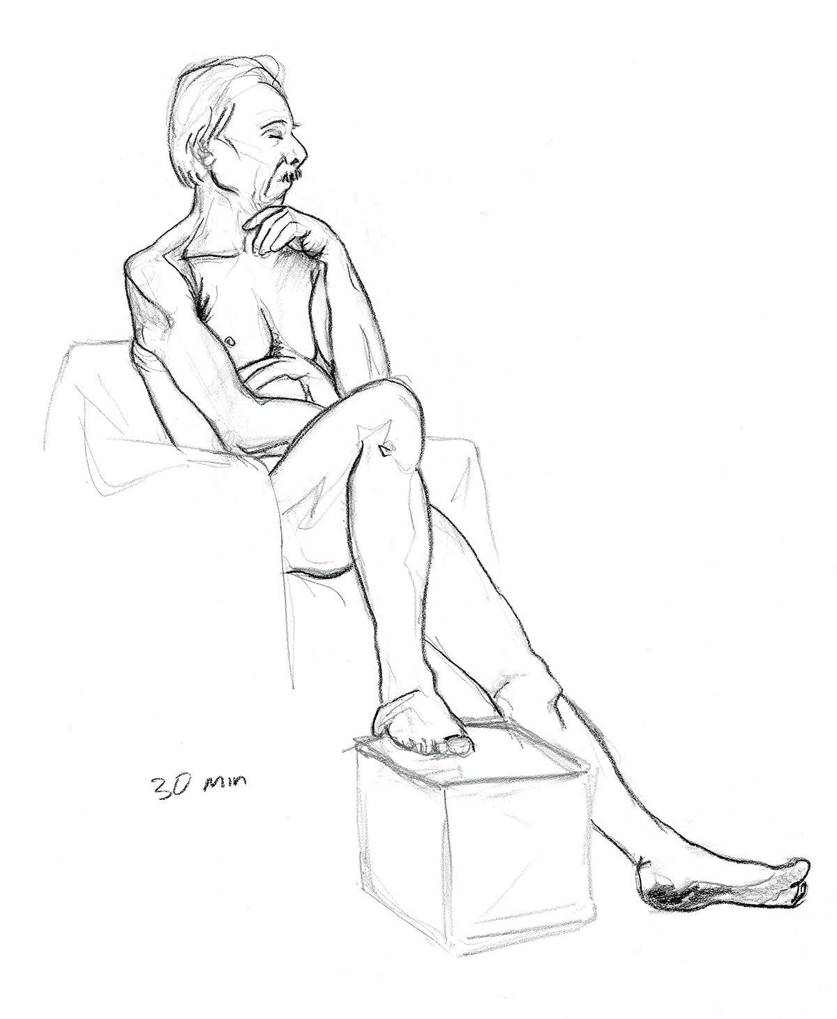 A collection of drawings and sketches of live models utilizing a variety of techniques and time limits.